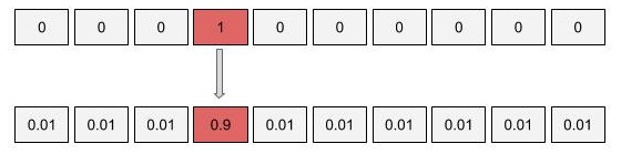 Với mô hình nhiều triệu tham số của transformer, thì việt overfit là chuyện dễ dàng xảy ra. Để hạn chế hiện tượng overfit, các bạn có thể sử dụng kỹ thuật label smoothing. Về cơ bản thì ý tưởng của kỹ thuật này khá đơn giản, chúng ta sẽ phạt mô hình khi nó quá tự tin vào việc dự đoán của mình. Thay vì mã hóa nhãn là một one-hot vector, các bạn sẽ thay đổi nhãn này một chút bằng cách phân bố một tí xác suất vào các trường hợp còn lại.