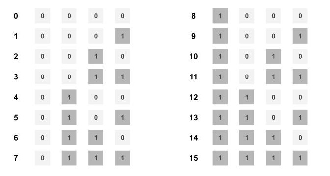 Lúc này một số bạn sẽ thắc mắc tại sao với cách biểu diễn vị trí như tác giả đề xuất lại có thể mã hóa thông tin vị trí của từ? Hãy tưởng tượng bạn có các số từ 0-15. Các bạn có thể thấy rằng bit ngoài cùng bên phải thay đổi nhanh nhất mỗi 1 số, và sau đó là bit bên phải thứ 2, thay đổi mỗi 2 số, tương tự cho các bit khác.