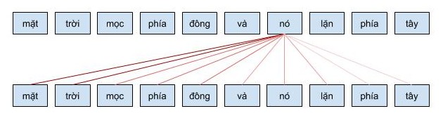 - self attention: giá trị attention khi mô hình decoder mã hóa câu đích lúc dịch