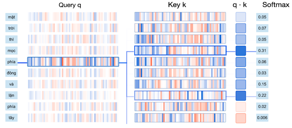 - value vector: vector biểu diễn nội dung, ý nghĩa của các từ. Các bạn có thể tượng tượng, nó như là nội dung trang web được hiển thị cho người dùng sau khi tìm kiếm.